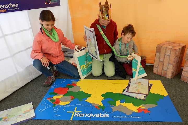 Ein Puzzle im XXL-Format: Leihen Sie sich das Renovabis-Riesenpuzzle aus: für Pfarrfeste, Jugendtage, Bildungsveranstaltungen: überall, wo Menschen sich für Osteuropa interessieren.
